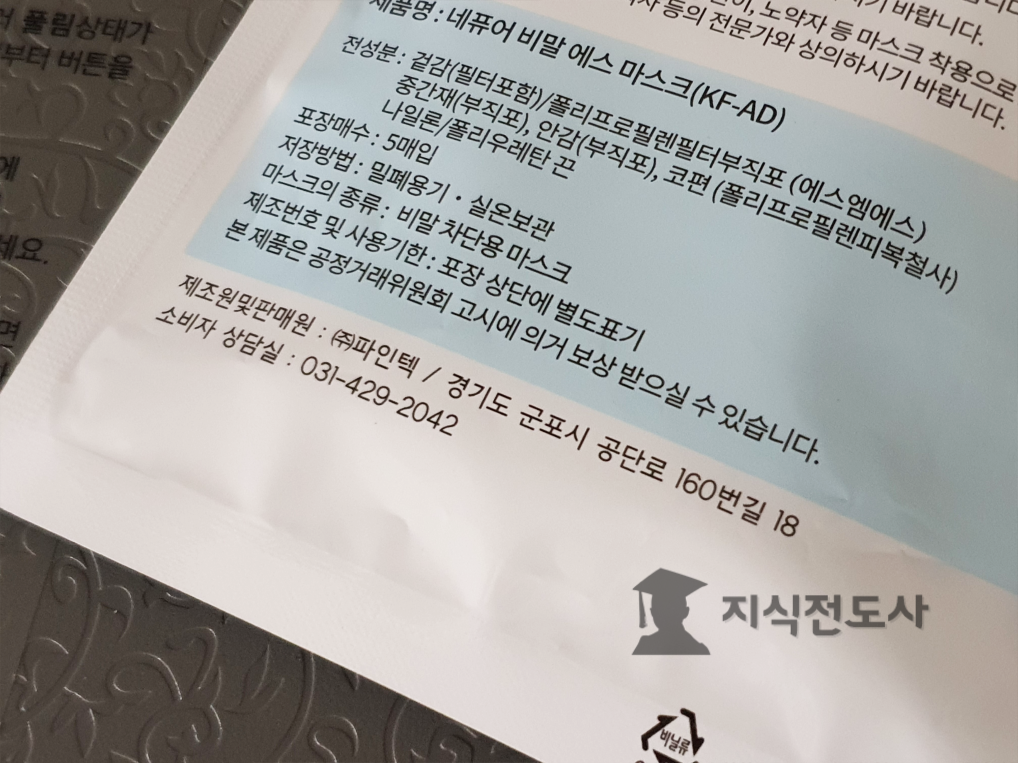 그리고 인터넷을 찾아보다보니 파인가드 알파 비말마스크와 네퓨어 비말에스 마스크가 같은 회사라고 하시는분들이 있더라고요~