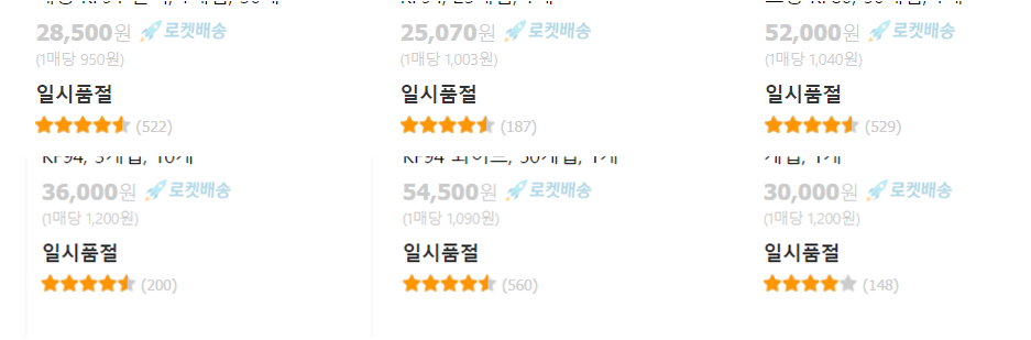부득이하게 쿠팡측에서 대부분의 로켓배송 상품들을 일시품절로 바꾸고 있습니다.