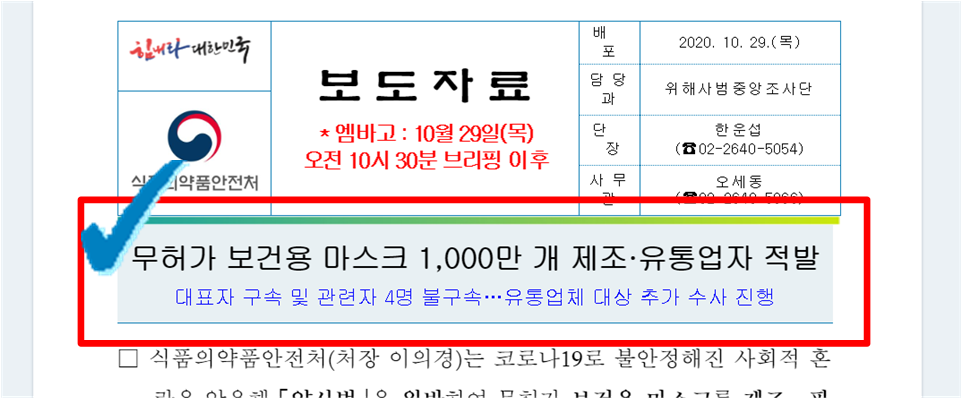 10월 29일, 식품의약품안전처에서
